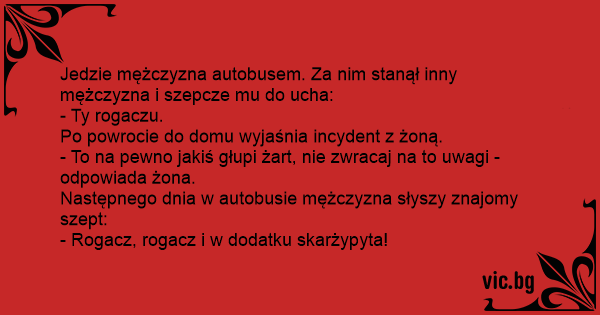 Jedzie mężczyzna autobusem. Za nim stanął inny mężczyzna i szepcze mu do ucha: