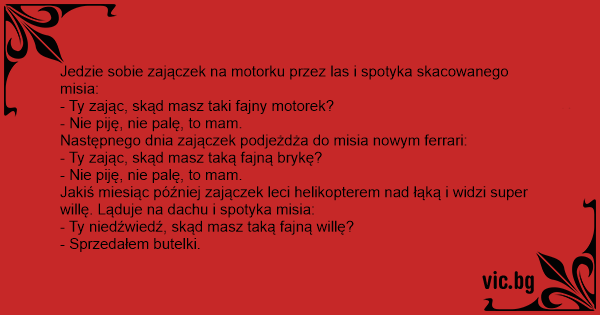 Jedzie sobie zajączek na motorku przez las i spotyka skacowanego misia: