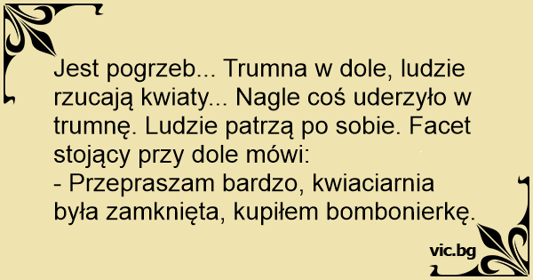 - Przepraszam bardzo, kwiaciarnia była zamknięta, kupiłem bombonierkę.
