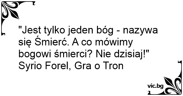 "Jest tylko jeden bóg - nazywa się Śmierć. A co mówimy bogowi śmierci? Nie dzisiaj!"