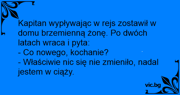 Kapitan wypływając w rejs zostawił w domu brzemienną żonę. Po dwóch latach wraca i pyta: