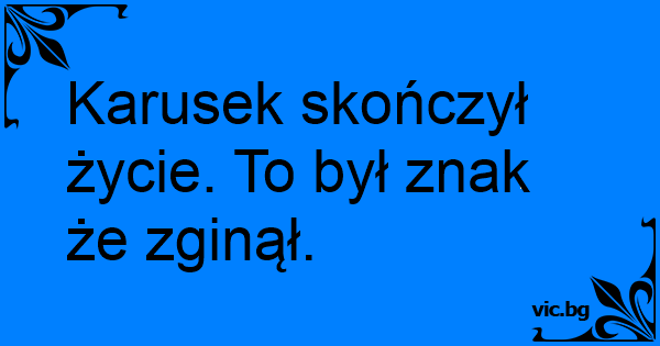Karusek skończył życie. To był znak że zginął.
