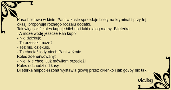 Tak więc jakiś koleś kupuje bilet no i taki dialog mamy: Bileterka: