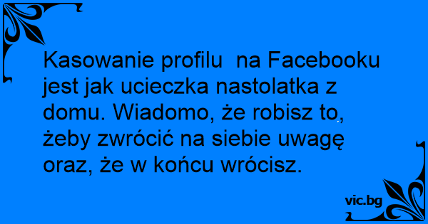 Kasowanie profilu na Facebooku jest jak ucieczka nastolatka z domu. Wiadomo, że robisz to, żeby zwrócić na siebie uwagę oraz, że w końcu wrócisz.