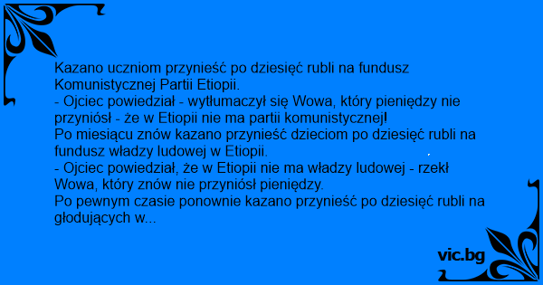- Ojciec powiedział, że w Etiopii nie ma władzy ludowej - rzekł Wowa, który znów nie przyniósł pieniędzy.