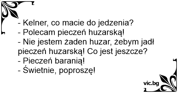 - Nie jestem żaden huzar, żebym jadł pieczeń huzarską! Co jest jeszcze?