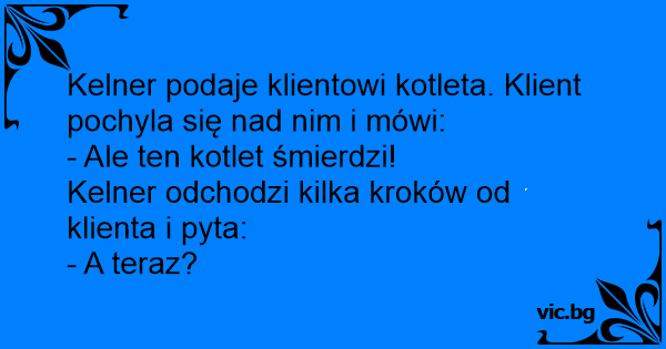 Kelner podaje klientowi kotleta. Klient pochyla się nаd nim i mówi: