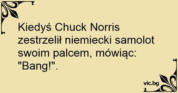 Kiedyś Chuck Norris zestrzelił niemiecki samolot swoim palcem, mówiąc: