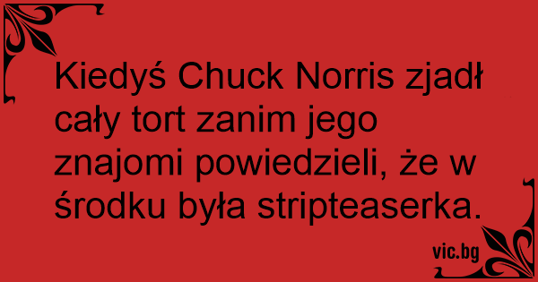 Kiedyś Chuck Norris zjadł cały tort zanim jego znajomi powiedzieli, że w środku była stripteaserka.