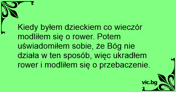 Kiedy byłem dzieckiem co wieczór modliłem się o rower. Potem uświadomiłem sobie, że Bóg nie działa w ten sposób, więc ukradłem rower i modliłem się o przebaczenie.