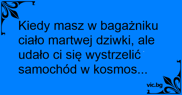 Kiedy masz w bagażniku ciało martwej dziwki, ale udało ci się wystrzelić samochód w kosmos...