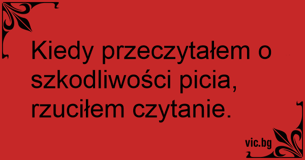 Kiedy przeczytałem o szkodliwości picia, rzuciłem czytanie.