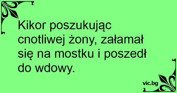 Kikor poszukując cnotliwej żony, załamał się na mostku i poszedł do wdowy.