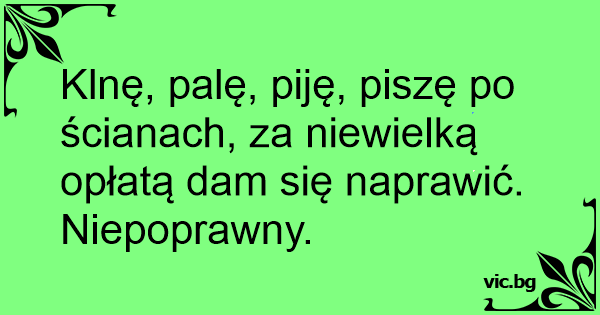 Klnę, palę, piję, piszę po ścianach, za niewielką opłatą dam się naprawić. Niepoprawny.