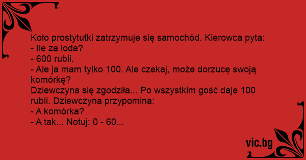 Koło prostytutki zatrzymuje się samochód. Kierowca pyta: