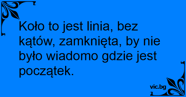 Koło to jest linia, bez kątów, zamknięta, by nie było wiadomo gdzie jest początek.