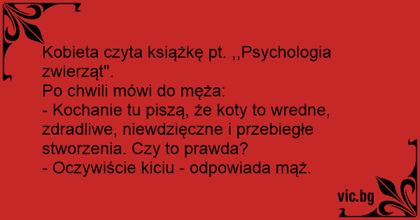 - Kochanie tu piszą, że koty to wredne, zdradliwe, niewdzięczne i przebiegłe stworzenia. Czy to prawda?
