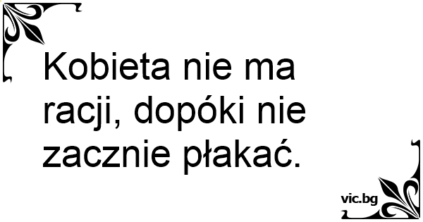 Kobieta nie ma racji, dopóki nie zacznie płakać.