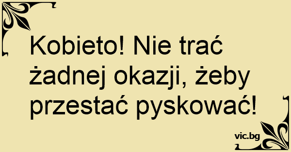 Kobieto! Nie trać żadnej okazji, żeby przestać pyskować!