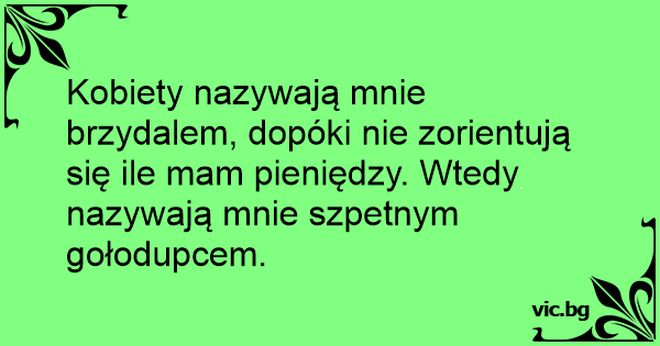Kobiety nazywają mnie brzydalem, dopóki nie zorientują się ile mam pieniędzy. Wtedy nazywają mnie szpetnym gołodupcem.
