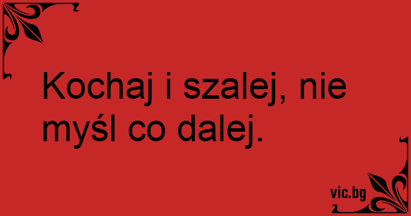 Kochaj i szalej, nie myśl co dalej.