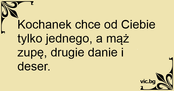 Kochanek chce od Ciebie tylko jednego, a mąż zupę, drugie danie i deser.