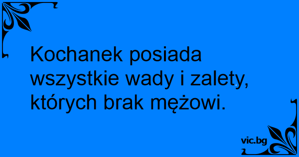 Kochanek posiada wszystkie wady i zalety, których brak mężowi.