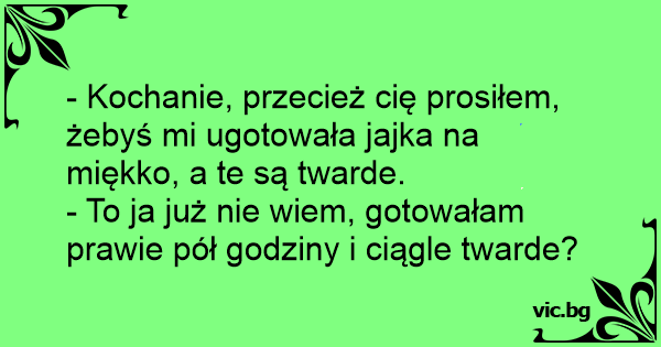- Kochanie, przecież cię prosiłem, żebyś mi ugotowała jajka na miękko, a te są twarde.
