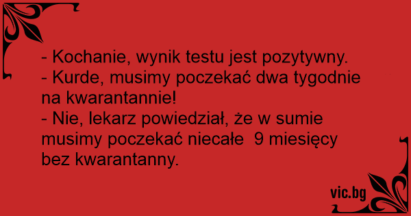 - Скъпи, имам положителен тест. - Лошо, сега 10 дни карантина. - Лекарят спомена за 9 месеца.