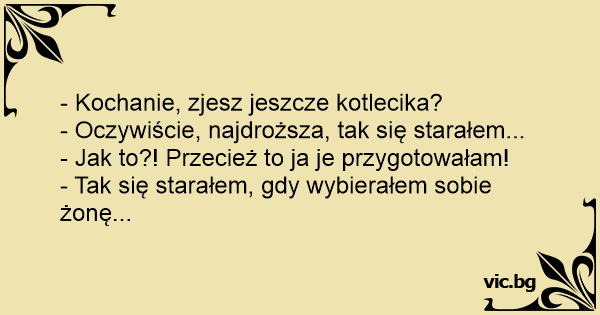 - Kochanie, zjesz jeszcze kotlecika?
