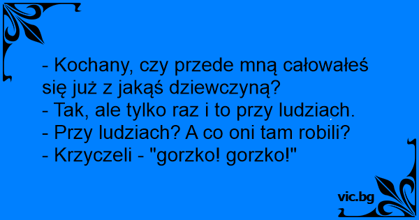 - Kochany, czy przede mną całowałeś się już z jakąś dziewczyną?