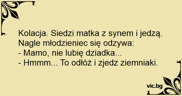 Kolacja. Siedzi matka z synem i jedzą. Nagle młodzieniec się odzywa: