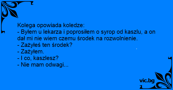 - Byłem u lekarza i poprosiłem o syrop od kaszlu, a on dał mi nie wiem czemu środek na rozwolnienie.
