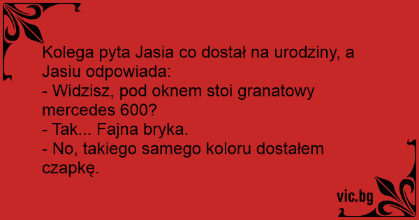 Kolega pyta Jasia co dostał na urodziny, a Jasiu odpowiada: