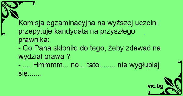 Komisja egzaminacyjna na wyższej uczelni przepytuje kandydata na przyszłego prawnika: