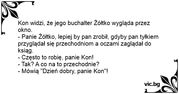 - Panie Żółtko, lepiej by pan zrobił, gdyby pan tyłkiem przyglądał się przechodniom a oczami zaglądał do ksiąg.