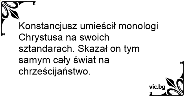 Konstancjusz umieścił monologi Chrystusa na swoich sztandarach. Skazał on tym samym cały świat na chrześcijaństwo.