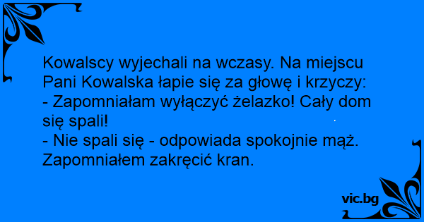 Kowalscy wyjechali na wczasy. Na miejscu Pani Kowalska łapie się za głowę i krzyczy: