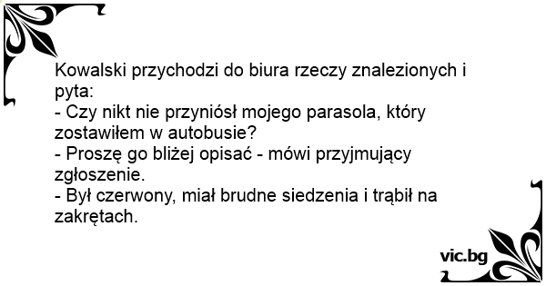 Kowalski przychodzi do biura rzeczy znalezionych i pyta: