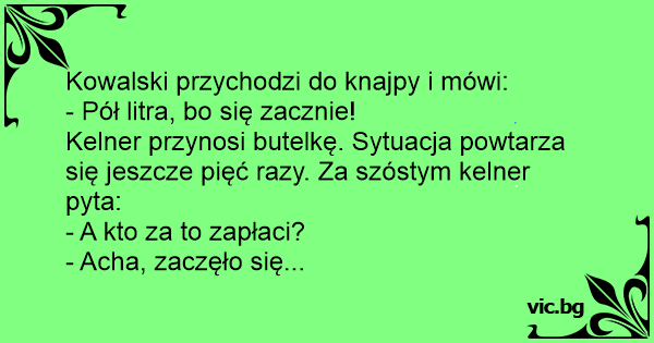 Kowalski przychodzi do knajpy i mówi: