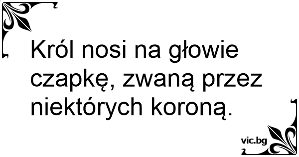 Król nosi na głowie czapkę, zwaną przez niektórych koroną.