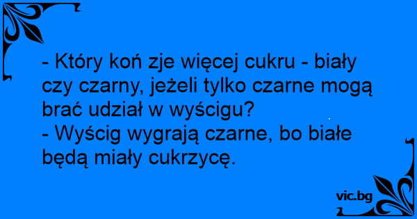 - Który koń zje więcej cukru - biały czy czarny, jeżeli tylko czarne mogą brać udział w wyścigu?