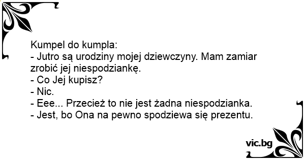 - Jutro są urodziny mojej dziewczyny. Mam zamiar zrobić jej niespodziankę.