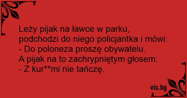 Leży pijak na ławce w parku, podchodzi do niego policjantka i mówi: