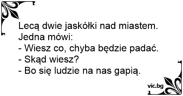 Lecą dwie jaskółki nаd miastem. Jedna mówi: