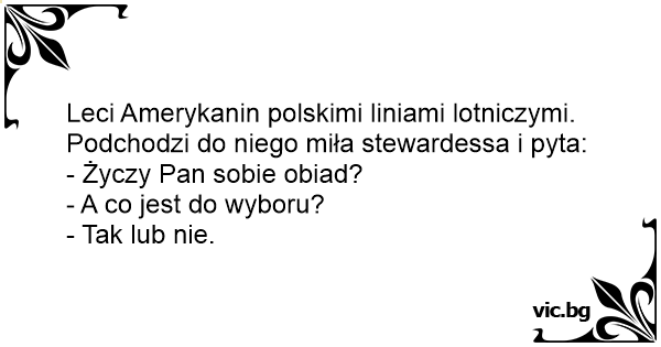 Stewardesa către un călător: - Doriţi cina? - Ce pot să aleg? - Da sau nu.