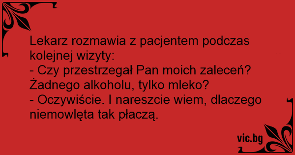 - Czy przestrzegał Pan moich zaleceń? Żadnego alkoholu, tylko mleko?