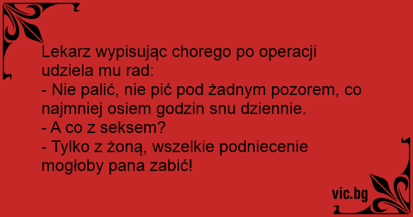 - Tylko z żoną, wszelkie podniecenie mogłoby pana zabić!