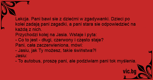 Przychodzi kolej na Jasia. Wstaje i pyta:
