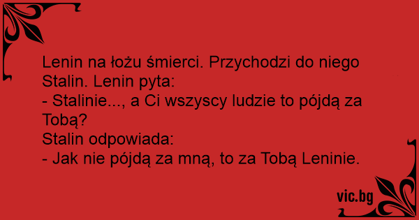 Lenin na łożu śmierci. Przychodzi do niego Stalin. Lenin pyta:
